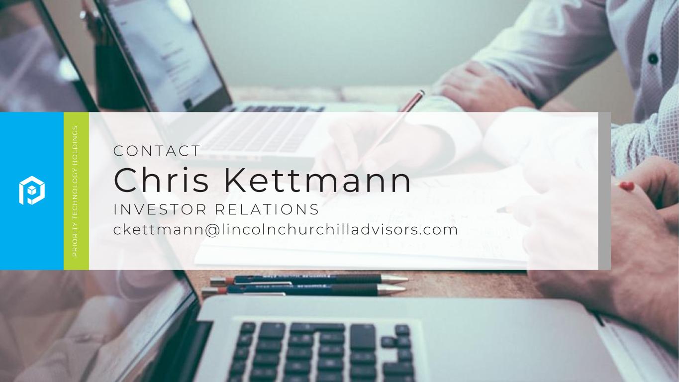 P R IO R IT Y T E C H N O L O G Y H O L D IN G S C O N T A C T Chris Kettmann I N V E S T O R R E L A T I O N S ckettmann@lincolnchurchilladvisors.com