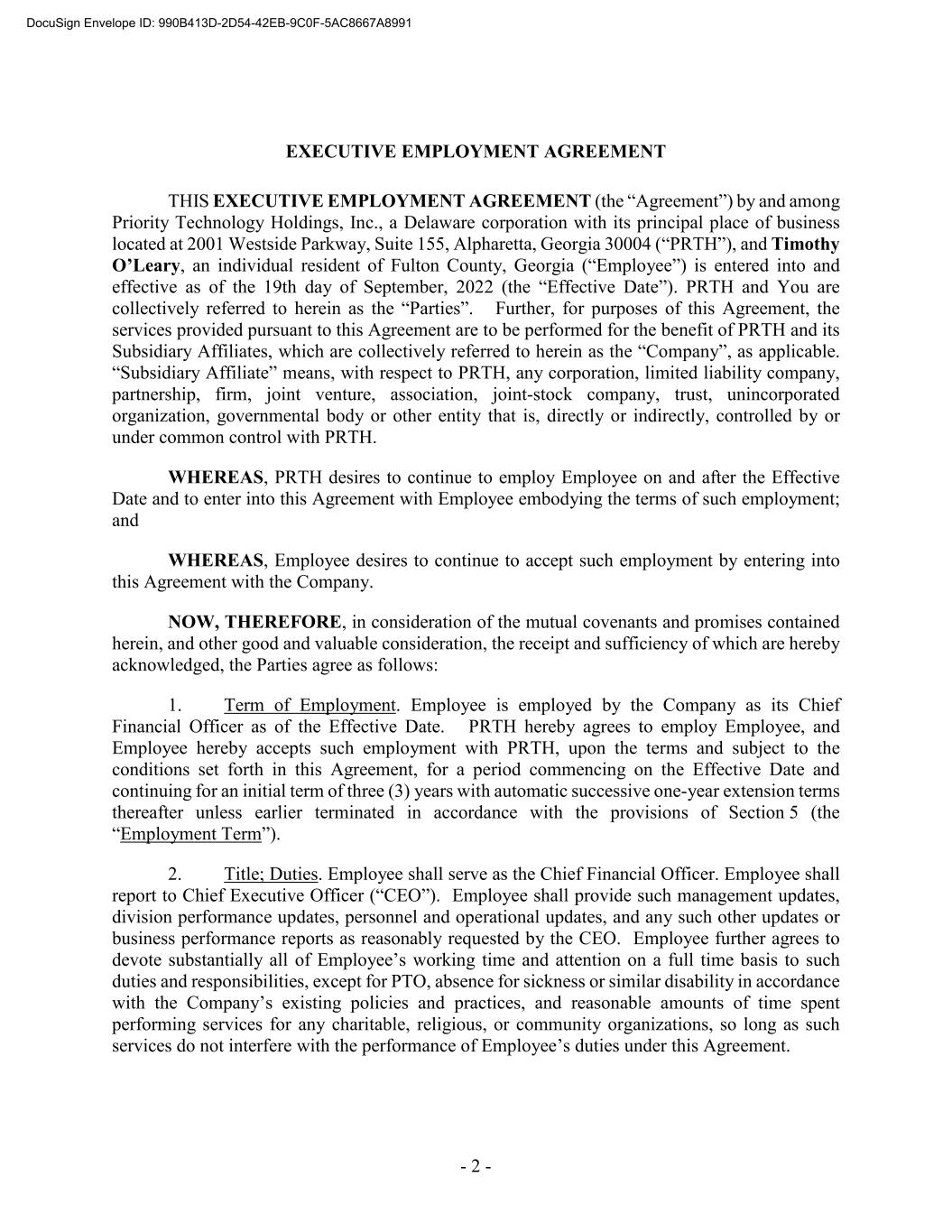 | 2021 Stock Purchase Plan | | Priority Technology Holdings, Inc. 2021 Employee Stock Purchase Plan |