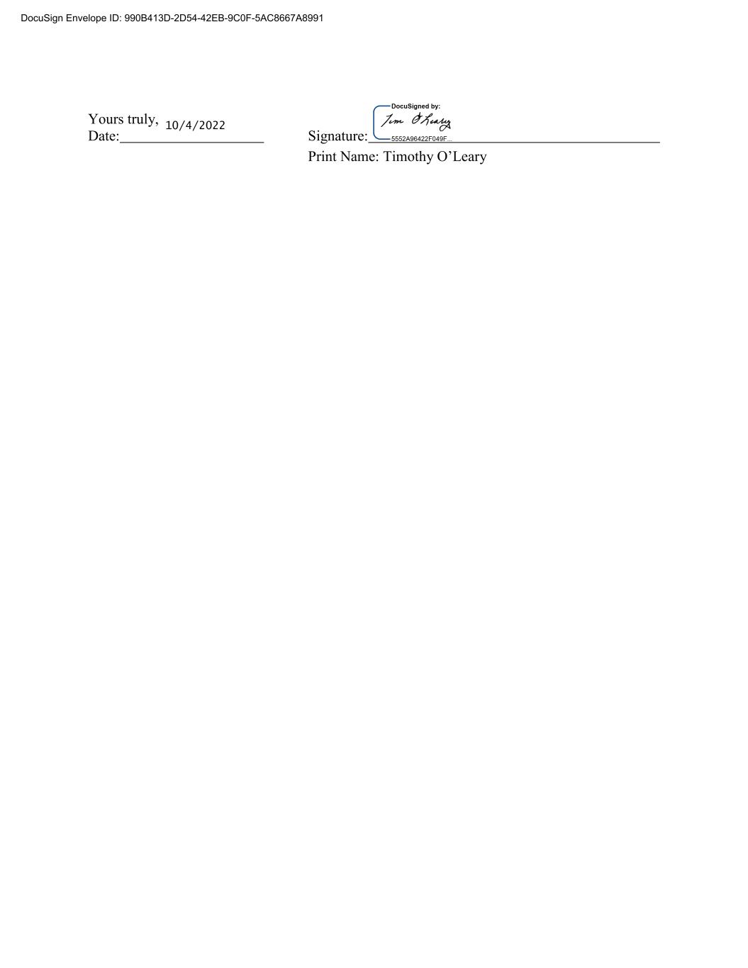 | November 10, 2022 | /s/ Timothy M. O'Leary Tim O'Leary Chief Financial Officer (Principal Financial Officer) |